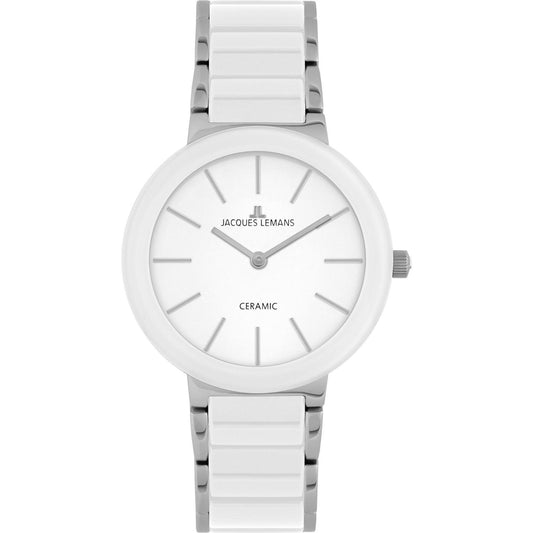 Reloj Jacques Lemans 42-8B Ceramic Cáratula blanca con detalles plateados-Blanco