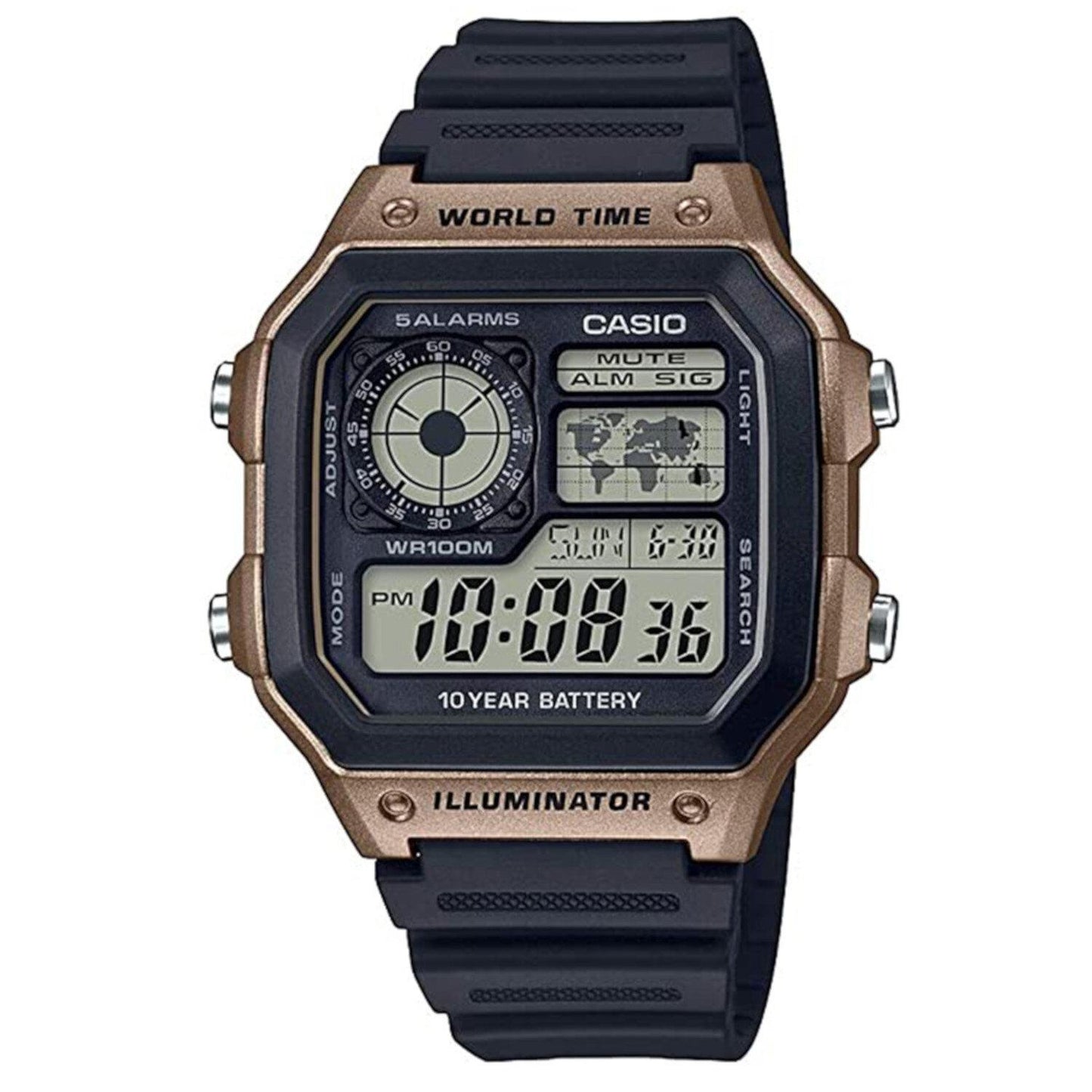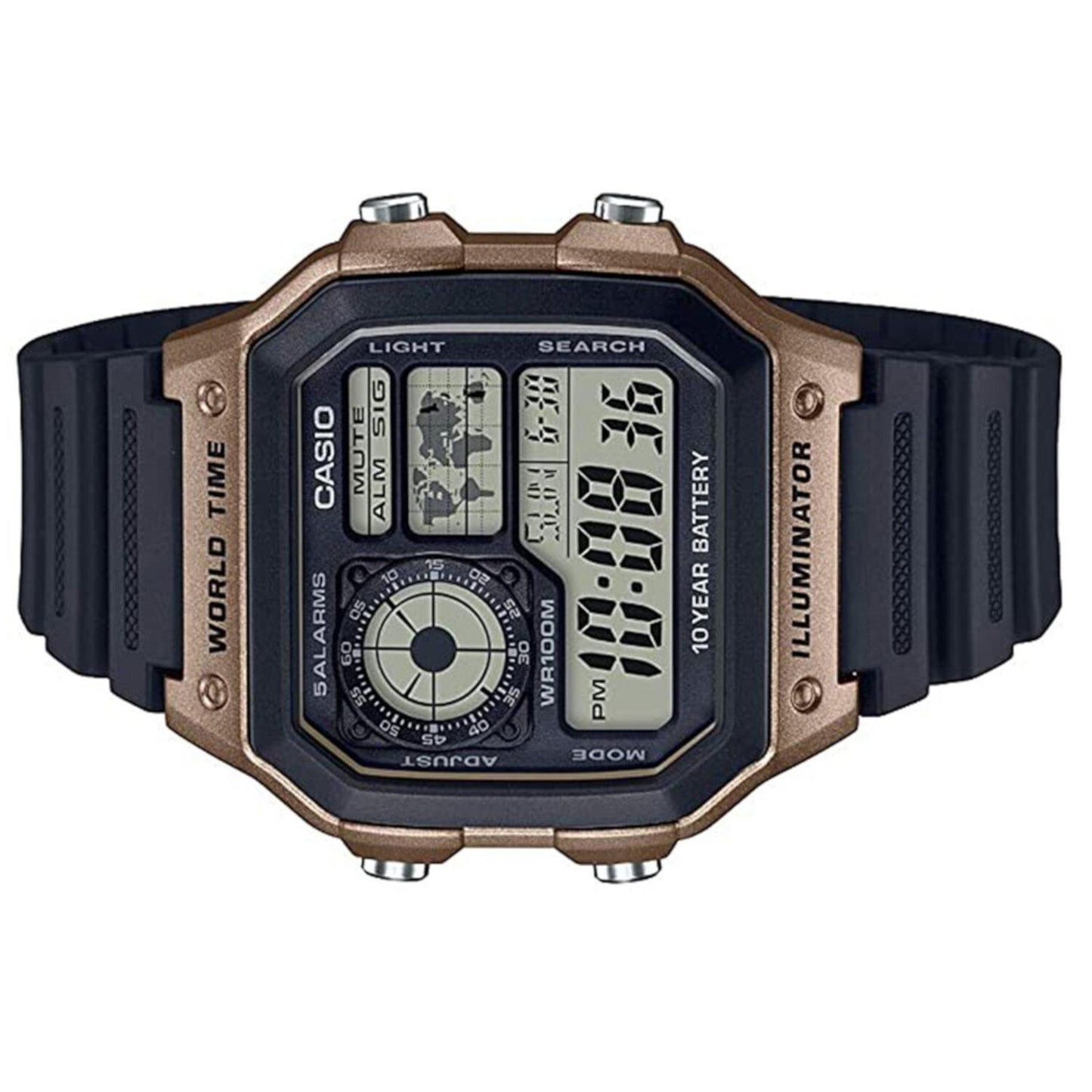 Reloj CASIO AE-1200WH-5AVCF World Time 5 Alarmas-Negro