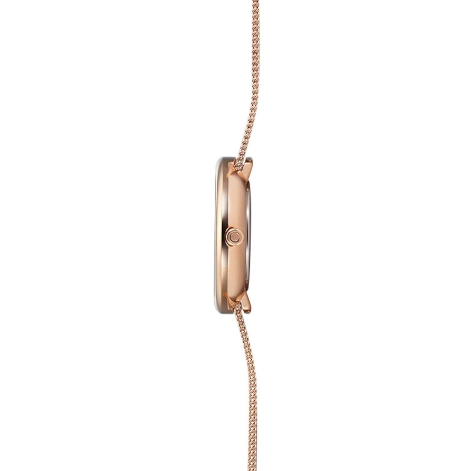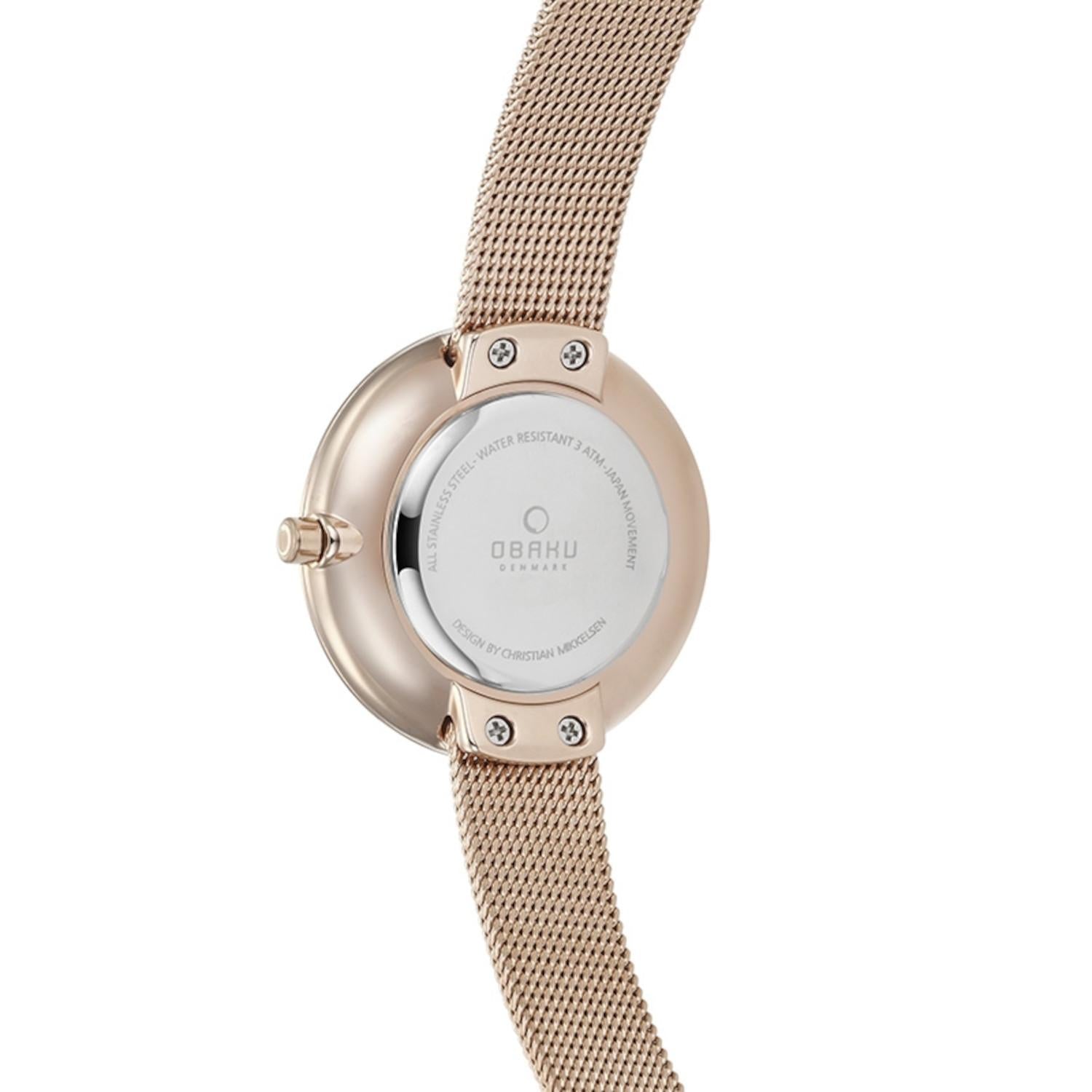 Reloj Obaku Denmark V161LXVNMV Color Oro Rosa, Colección BLIK CHOCOLATE Análogo, Diámetro de 28 mm, Resistencia al agua 30 metros (3 ATMs), Caja en forma Circular hecho en Acero Inoxidable, correa o banda en Acero Inoxidable.