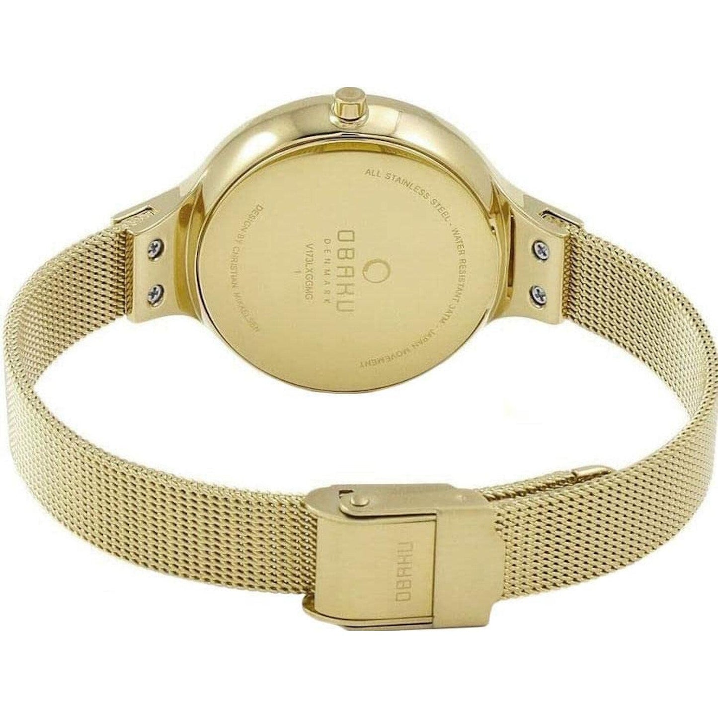 Reloj Obaku Denmark V185LXGGMG Color Dorado, Colección Ladies Análogo, Diámetro de 38 mm, Resistencia al agua 30 metros (3 ATMs), Caja en forma Circular hecho en Acero Inoxidable, correa o banda en Acero Inoxidable.