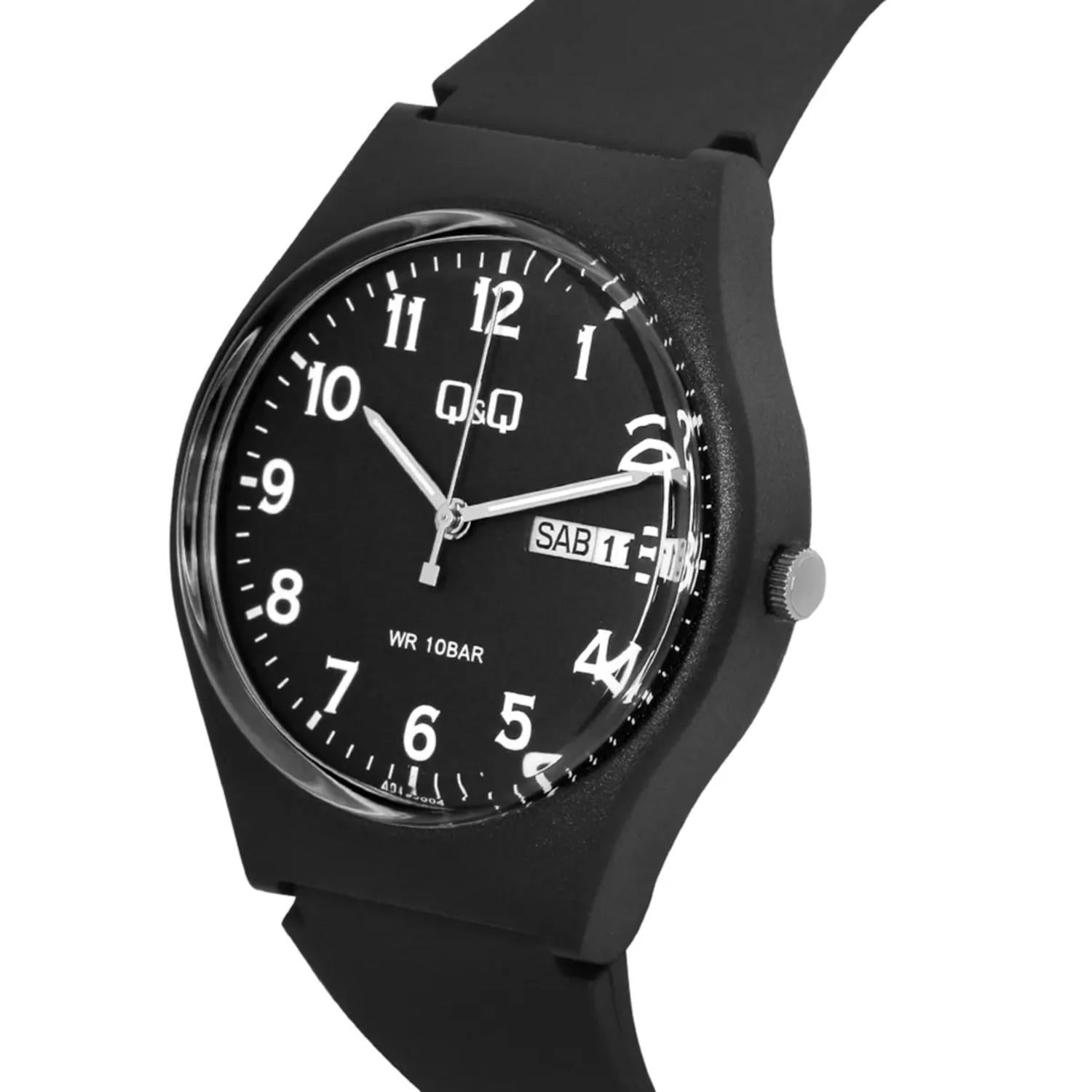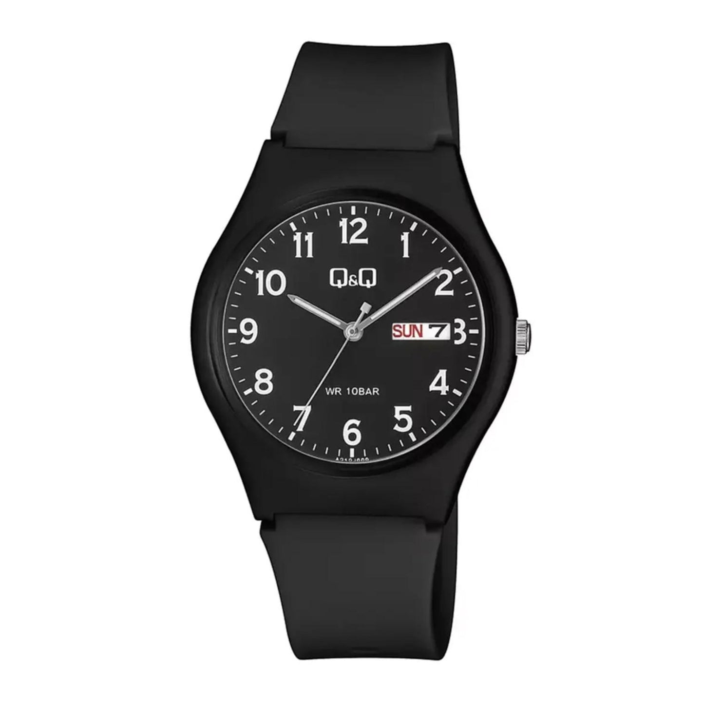 Reloj Q&Q A212J004Y Color Negro, Colección MEN´S Análogo, Diámetro de 38 mm, Resistencia al agua 100 metros (10 ATMs), Caja en forma Circular hecho en Resina, correa o banda en Resina.